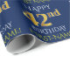 Este diseño de papel envolvente presenta un mensaje como "FELIZ CUMPLEAÑOS 42", con el "42" con una apariencia de oro falsa/imitación. También tiene un nombre personalizado y un fondo de color azul. Tal vez podría ser usado cuando se envuelven regalos para el 42 cumpleaños de alguien. [~Z0000135]