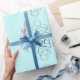 Papel De Regalo Azul pálido Verde azulado florecido AMOR caligrafí