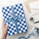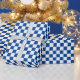 Arte digital abstracto de cuadrados azules profundos y blancos en formación a cuadros. Con la capacidad de cambiar los cuadrados azules profundos cambiando el color de fondo para que coincida con los cuadrados blancos.