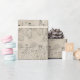 Diseño de boceto en un fondo de papel envejecido que muestra a varios artistas coreanos cantando tambores, bailando y cantando. Este es el papel de envoltura perfecto para un pequeño toque de Corea cuando se celebra una fiesta tradicional como Choseok o un cumpleaños.