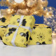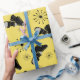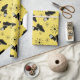 Recopile los regalos para su bailarín favorito de grifo con estilo con este papel de envoltura con temas de baile. Este envoltorio de regalo presenta un patrón de zapatos de tacón en formas de estribo u asterisco en negro y gris y negro, colocados sobre un fondo dorado amarillo y soleado.
