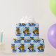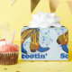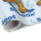 Papel de envoltura de regalo de baile de línea con botas de vaquero y símbolos musicales detrás de ellos y el texto "Scootin de arranque". Este diseño está disponible en un par de colores diferentes.