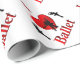 Gran diseño con un corazón 3D rodeado de bailarines de ballet en diferentes poses.