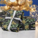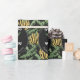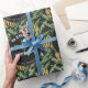 Este juguetón y moderno "Go Bananas!" papel de envoltura negro, amarillo y verde incluye bolsitas de plátano amarillas dibujadas a mano y hojas de plátano tropical verde contra un fondo casi negro con sutiles gotas de lluvia que se detallan en gris oscuro. Personaliza con un título (Feliz Cumpleaños, Feliz Aniversario, Felicitaciones, etc.) y tu nombre.