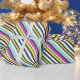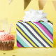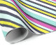 Dé a sus regalos un toque de acabado brillante y audaz, con este papel de envoltura colorido. La envoltura de regalo está estampada con rayas diagonales en una combinación de colores vibrantes, incluyendo rosa magenta, azul claro, amarillo limón, blanco y marina.
