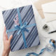 Papel De Regalo Bandas de Navidad azul y Relieve metalizado platea
