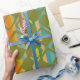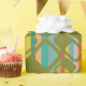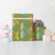 Este papel de envoltura tiene un diseño moderno de mediados de siglo de rectángulos verdes redondeados con agujeros sobre un fondo de rayas de colores modernos de mediados de siglo. Si te gusta el diseño pero prefieres colores diferentes, envíame un mensaje.