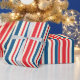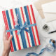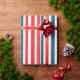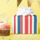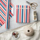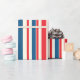 Esta obra de arte presenta un patrón audaz y directo de rayas verticales en un esquema clásico de color rojo, blanco y azul. Las rayas son uniformemente espaciadas y de grosor alternativo, creando un diseño rítmico y visualmente llamativo. El arreglo lineal y limpio de los colores da a la pieza un sentido de orden y simplicidad, mientras que el uso de matices patrióticos evoca un sentido de orgullo nacional y tradición. La repetición y el equilibrio en el patrón contribuyen a su estética fuerte y geométrica.