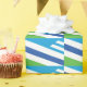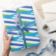 Papel envuelto con un diseño con la bandera de Dayton, Ohio. Bandera verde, azul y blanca