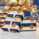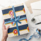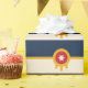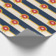 Papel envuelto con un diseño con la bandera de Tulsa, Oklahoma. Bandera beige y azul marino con un escudo Osage dorado que contiene un círculo rojo y una estrella beige de seis puntas