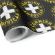 Cornwall Cornish American Flag Gift Wrap. Diseño de círculo en blanco, amarillo y negro con la bandera de Cornualles y el Duque de Cornwall. Con el texto Cornish American a su alrededor.