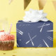 Magnífico papel de envoltura azul marino y blanco, con un patrón de botes y remos de ala blanca. Perfecto para el remero en tu vida.