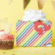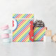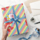 Este lindo papel de envoltura de personalizado le agregará un divertido toque de color a los regalos de la fiesta de cumpleaños de su hijo. El adorable diseño rainbow striped incluye a Elmo, el feliz monstruo rojo de Plaza Sésamo. La linda mascota parece lista para el fiesta mientras baila con una sonrisa gigante en su peluda cara. © 2021 Sesame Workshop. www.sesamestreet.org