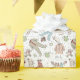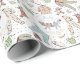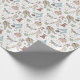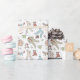 Este papel de envoltura de personalizado de Baby Shower, neutro en género, "Baby it's fría afuera", presenta un lindo ilustracion hecho a mano de pijamas de invierno, animales rellenos y bichos colgados en un tendedero, contra un patrón de Navidades de pijama bodysuit, animales de felpa, botellas de bebé, biberones, pacificadores, regalos y pequeñas estrellas amarillas. nombre, evento y fecha del personalizable. Elegante fondo blanco.