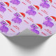 Papel De Regalo Bebé púrpura lindo Dinosour con el gorra de Santa