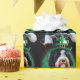 Un amigo peludo detrás de las manillares de una brillante bicicleta verde, usando un traje verde del Día del San Patricio que hace que las cabezas se vuelvan. El perro está vestido con un conjunto festivo, con una corbata verde de arco y un sombrero superior a juego que se sienta cómodos sobre su cabeza. El conjunto presenta un diseño intrincado de rocas de champú y leprechauns, lo que deja claro que este perro está listo para celebrar el Día de San Patricio con estilo.