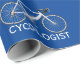 Bicicleta blanca con texto CYCOLGIST sobre fondo azul. Se puede cambiar el color de fondo.