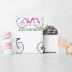 Bicicleta rosa con texto en blanco en blanco en CYCOLGIST negro. Se puede cambiar el color de fondo.