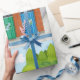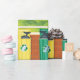 Una hilera de coloridas papeleras de reciclaje. Este diseño se ve realmente efectivo en este papel de ajuste