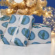 Este papel de envoltura muestra una silueta de pájaro en gris contra un círculo azul. El color de fondo gris más claro se puede personalizar fácilmente. Diseño original - C. McGouldrick