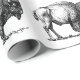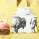 Una imagen del vintage en blanco y negro de un bisonte americano del búfalo. Deje este diseño chistoso de entretenimiento de los niños hacer hablar para usted.