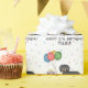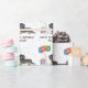 Diseño temático de cumpleaños lindo con el original ilustracion personalizado de Destei de un adorable perro de raza Dachshund de color negro y abrigo color canto. Al lado del perro hay globos de cumpleaños coloridos atados sobre un hueso de perro y una caja de regalo de color morado y amarillo. El fondo está decorado en tonos pastel y con un fondo blanco. También hay un área de texto personalizable.