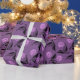 En base a un patrón hexágono, tres libélulas negras frente a la espiral interna, compensándolas son flores moradas. El diseño se hace en un estilo de arte vectorial.