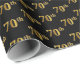Este diseño de papel envolvente presenta el número ordinal "70" con un aspecto falso/imitación dorado. También tiene un fondo de color negro. Se puede usar cuando se envuelven regalos para el septuagésimo cumpleaños de alguien, o tal vez para el septuagésimo aniversario del boda de una pareja casada, o para algún otro acontecimiento u ocasión del 70. [~Z0000124]
