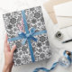 Gift Giving Package Wrapping Paper Long Sheet Roll printed with Black And Gray On White Retro Floral Art Seamless Pattern original hand drawn graphic design artwork illustration by TheFabricSeal print on demand shop at Zazzle.com #ZazzleMade ©️Original. https://www.zazzle.com/store/thefabricseal
