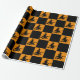 Papel De Regalo Black Witches on Orange Checkered Wrapping Paper