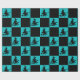 Papel De Regalo Black Witches on Teal Checkered Wrapping Paper