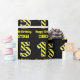 Papel De Regalo Black & Yellow Striped "15"; 15th Birthday + Name