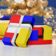 Bloques geométricos rojos, amarillos, negros y azules envueltos de papel de colores cautivadores de rojo, azul, amarillo, blanco y negro diseñados para todo tipo de regalo de ocasión. Por celeste@khoncepts.com