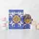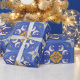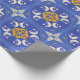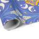 Blue and gold patterned wallpaper with intricate floral and geometric designs, shown unrolled and flat. The design exudes a classic and ornate feel.
