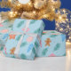 A charming blue holiday wrapping paper with gingerbread cookies, ornaments, candy canes, and pine branches. A cute and cheerful Christmas design that adds a fun touch to any gift.