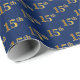 Este diseño de papel envolvente presenta el número ordinal "15" con un aspecto falso/imitación dorado. También tiene un fondo de color azul. Se puede usar cuando se envuelven regalos para el décimo quinto cumpleaños de alguien, o tal vez para el décimo quinto aniversario del boda de una pareja casada, o para algún otro evento u ocasión del 15. [~Z0000129]