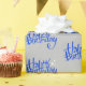 Fuente divertida de cumpleaños azul con estrellas blancas en fondo gris. Se puede cambiar el color de fondo.