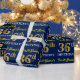 Este diseño de papel envolvente incluye un mensaje como "¡El cumpleaños número 36 del primer nombre!", mientras que el "36" tiene un aspecto de color falso/imitación dorado. El nombre se puede personalizar y el fondo es azul. Tal vez podría usarse cuando se envuelven regalos para alguien que cumple 36 años. [~Z0000181]