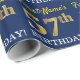 Este diseño de papel envolvente incluye un mensaje como "¡57º CUMPLEAÑOS!", mientras que el "57º" tiene un aspecto de color falso/imitación de color dorado. El nombre se puede personalizar y el fondo es azul. Tal vez podría ser usado cuando se envuelven regalos para el 57 cumpleaños de alguien. [~Z0000181]