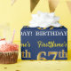 Este diseño de papel envolvente incluye un mensaje como "¡El cumpleaños número 67 de FirstName!", mientras que el "67" tiene un aspecto de color falso/imitación dorado. El nombre se puede personalizar y el fondo es azul. Tal vez podría ser usado cuando se envuelven regalos para el cumpleaños sesenta y siete de alguien. [~Z0000181]