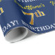 Papel De Regalo Blue, Imitation Gold Look "7º CUMPLEAÑOS"