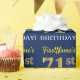 Este diseño de papel envolvente incluye un mensaje como "¡El cumpleaños número 71 de FirstName!", mientras que el "71" tiene un aspecto de color falso/imitación dorado. El nombre se puede personalizar y el fondo es azul. Tal vez podría usarse cuando se envuelven regalos para el cumpleaños setenta y uno de alguien. [~Z0000181]