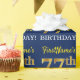 Este diseño de papel envolvente incluye un mensaje como "¡El cumpleaños número 77 de FirstName!", mientras que el "77" tiene un aspecto de color falso/imitación dorado. El nombre se puede personalizar y el fondo es azul. Tal vez podría usarse cuando se envuelven regalos para el cumpleaños setenta y siete de alguien. [~Z0000181]