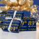 Este diseño de papel envolvente incluye un mensaje como "¡El 89º CUMPLEAÑOS!", en el que el "89º" tiene un aspecto de color falso/imitación dorado. El nombre se puede personalizar y el fondo es azul. Tal vez podría usarse cuando se envuelven regalos para el cumpleaños ochenta y nueve de alguien. [~Z0000181]