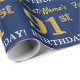 Papel De Regalo Blue, Imitation Gold Look "91st BIRTHDAY"