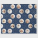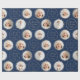 Christmas gift wrapping paper feature modern Merry Christmas script and botanical leaves wreaths, with personalized family name and 6 photos in navy blue and gold, simple and elegant.