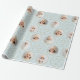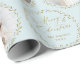 Christmas gift wrapping paper feature modern Merry Christmas script and botanical leaves wreaths, with personalized family name and 6 photos in winter blue and gold. simple and elegant.
