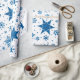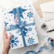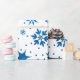 Vibrant blue snowflake pattern on a white background, featuring diverse shapes and sizes. Ideal for winter, holiday, Christmas themes, greeting cards, and festive design projects.