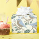 Este papel de envoltura con motivos tiene una huella divertida, perfecta para los amantes de las aves y de la naturaleza. Este envoltorio de regalo incluye ilustraciones sencillos de pájaros planos encaramados sobre ramas de arándano azul. Los gráficos son de color azul claro, marrón claro y verde oscuro con un fondo de color crema o marfil.