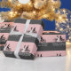 Envoltura de regalo personalizada para boda de novios en bicicleta tándem .. papel de regalo en tonos rosa y gris con una novia con vestido de novia y un pequeño corazón rojo en el velo y un novio con traje .. añade tu propio texto .. también disponible en otros tamaños .. rollos de papel de regalo de diseñador de Ricaso